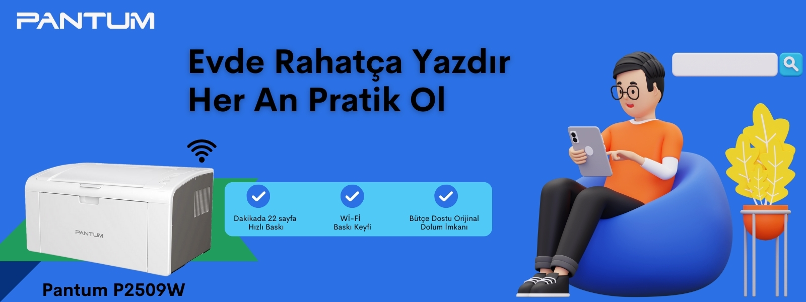 Pantum P2500W Wi-Fi Mono Lazer Yazıcı